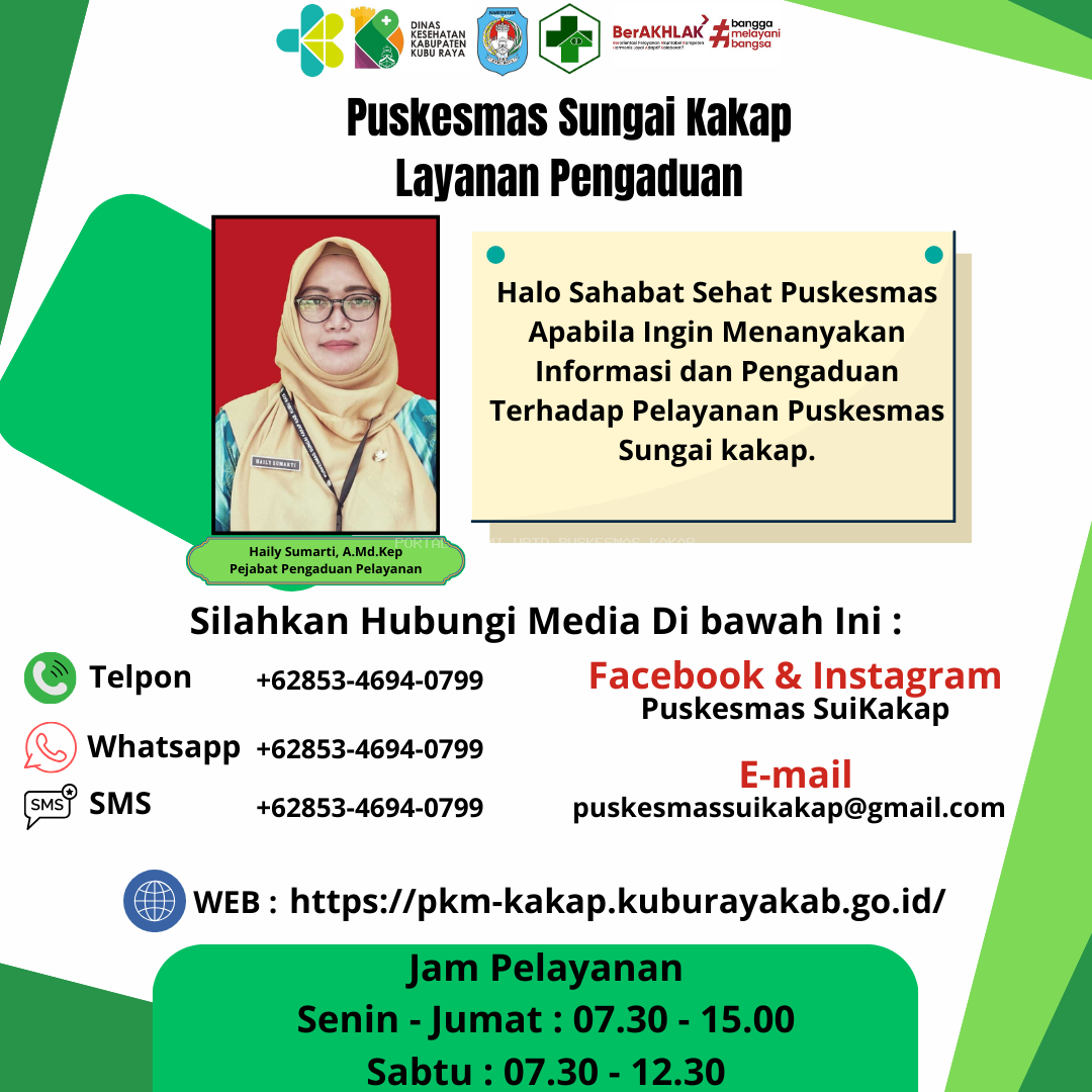 Halo Sahabat Sehat Puskesmas Apabila Ingin Menanyakan Informasi dan Pengaduan Terhadap Pelayanan Puskesmas Sungai kakap, Silahkan Hubungi Media Di bawah Ini :