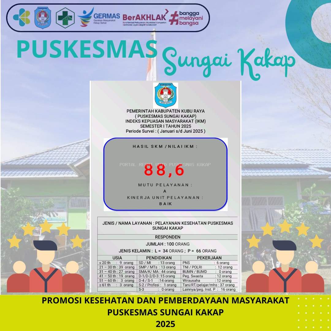 Puskesmas Sungai Kakap Pada Semester Satu Mendapatkan Nilai 88.6, Terimakasih Kami Ucapkan Kelada Seluruh Pelanggan Dan Ini Menjadi Evaluasi Kami Untuk Terus Melayani Dan Terus Berinovasi Untuk Memberikan Pelayanan Yang Lebih Baik Lagi ![]()