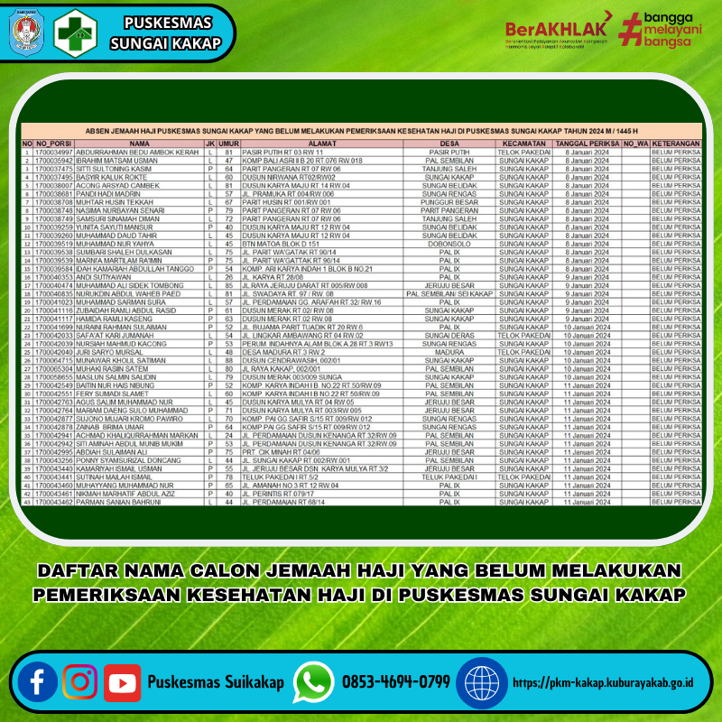DAFTAR NAMA CALON JEMAAH HAJI YANG BELUM MEMERIKSAKAN KESEHATAN DI PUSKESMAS SUNGAI KAKAP
